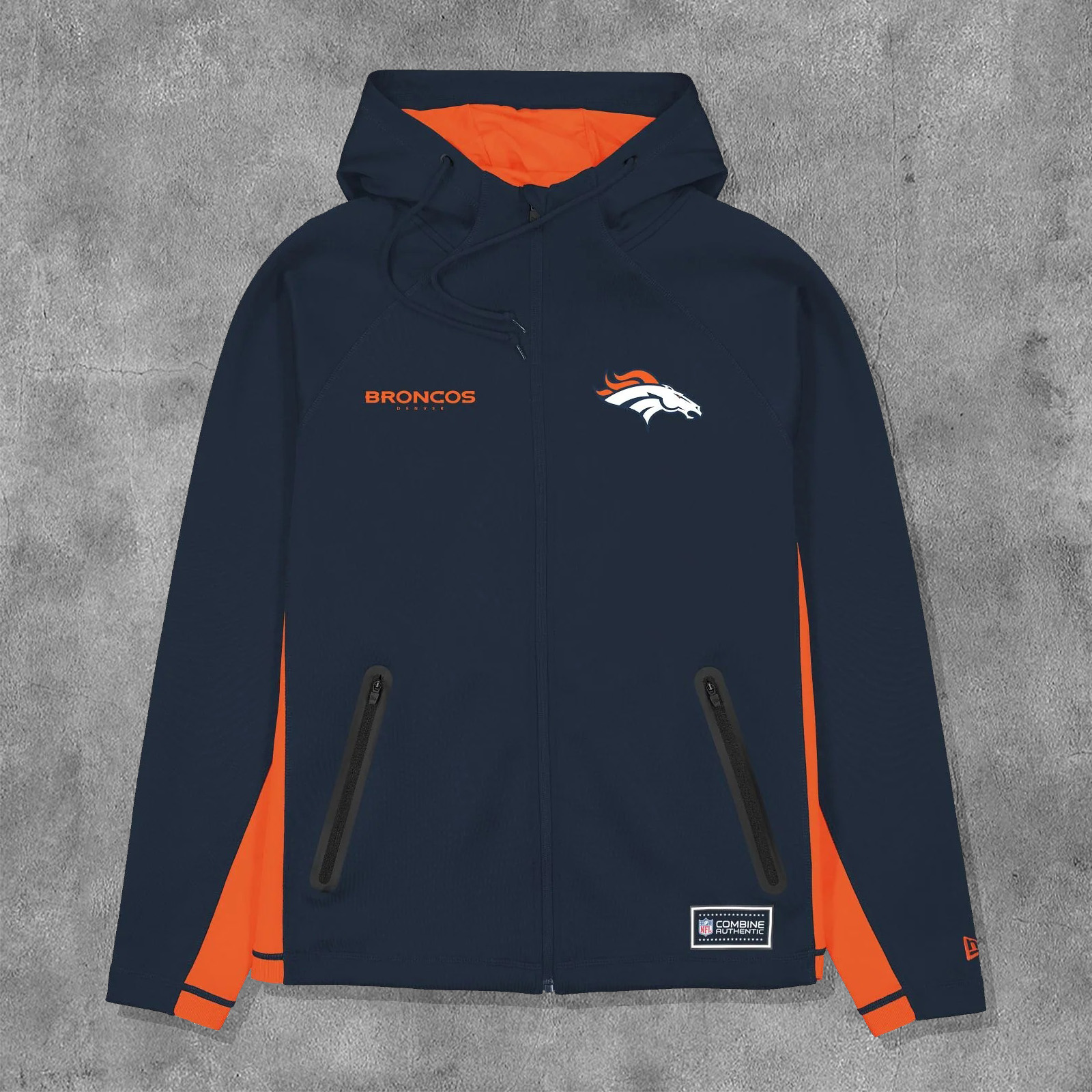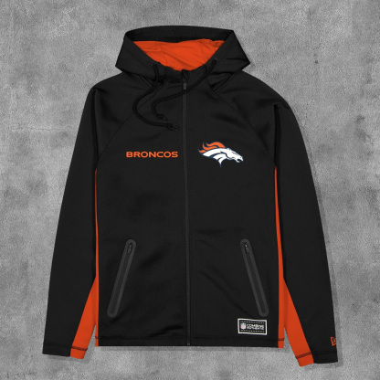 Stylish Broncos Print Long Sleeve Zipper Hooded Jacket