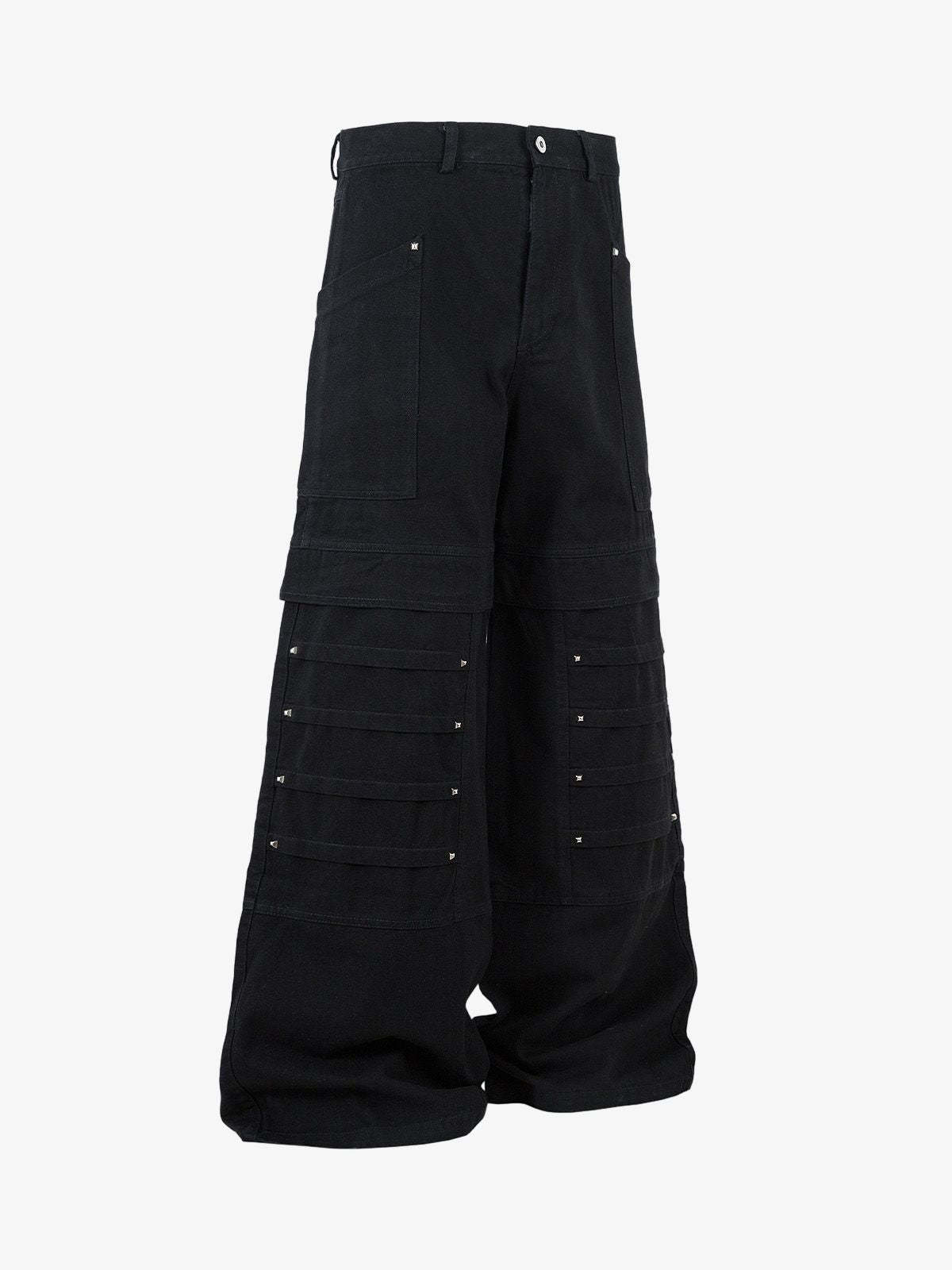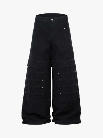 • Detail Features: Multiple functional pockets, wide-leg silhouette, decorative rivets