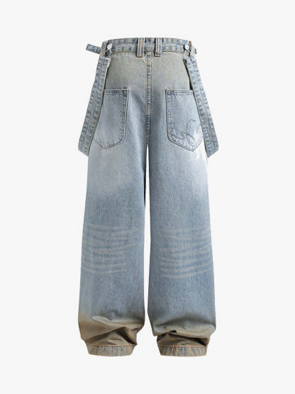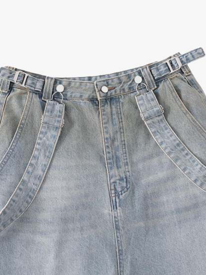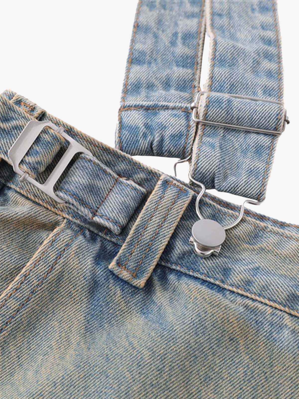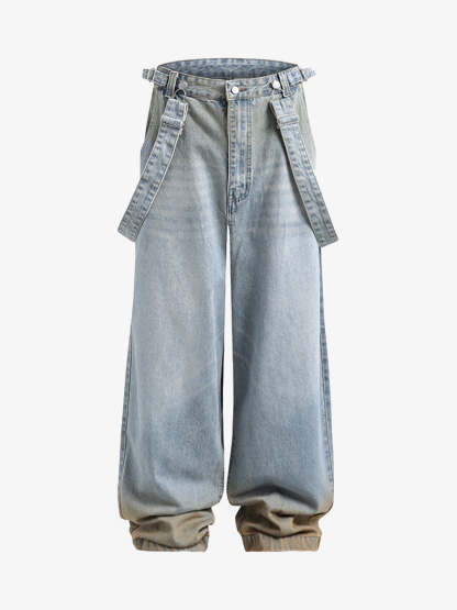 • Detail Features: Detachable suspender straps, wide-leg cut, cuffed hems